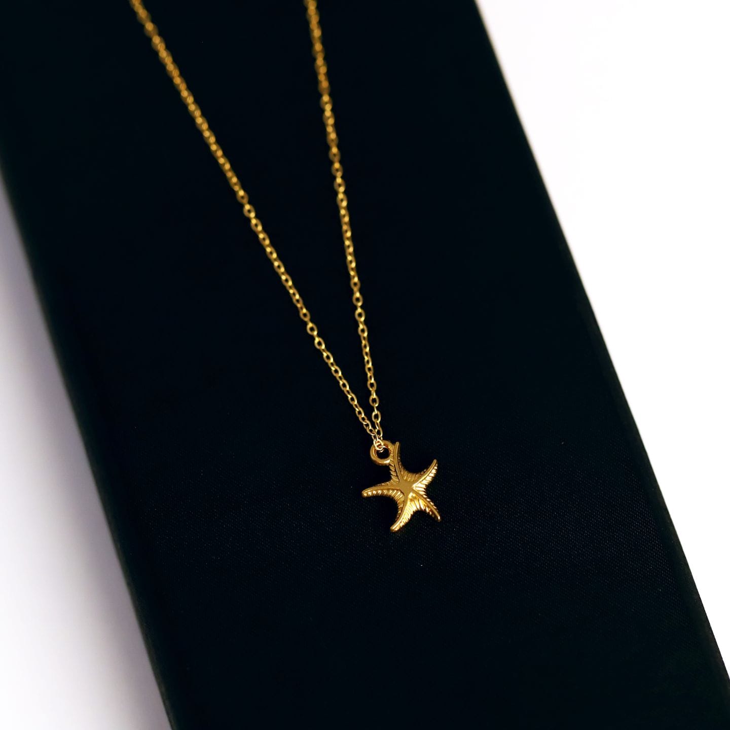 A delicate nod to the ocean, this gold starfish necklace brings effortless coastal charm to any look. The pendant’s subtle texture catches the light beautifully, adding dimension without overpowering your style. Simple, timeless, and easy to wear — it’s a piece you’ll reach for year-round.